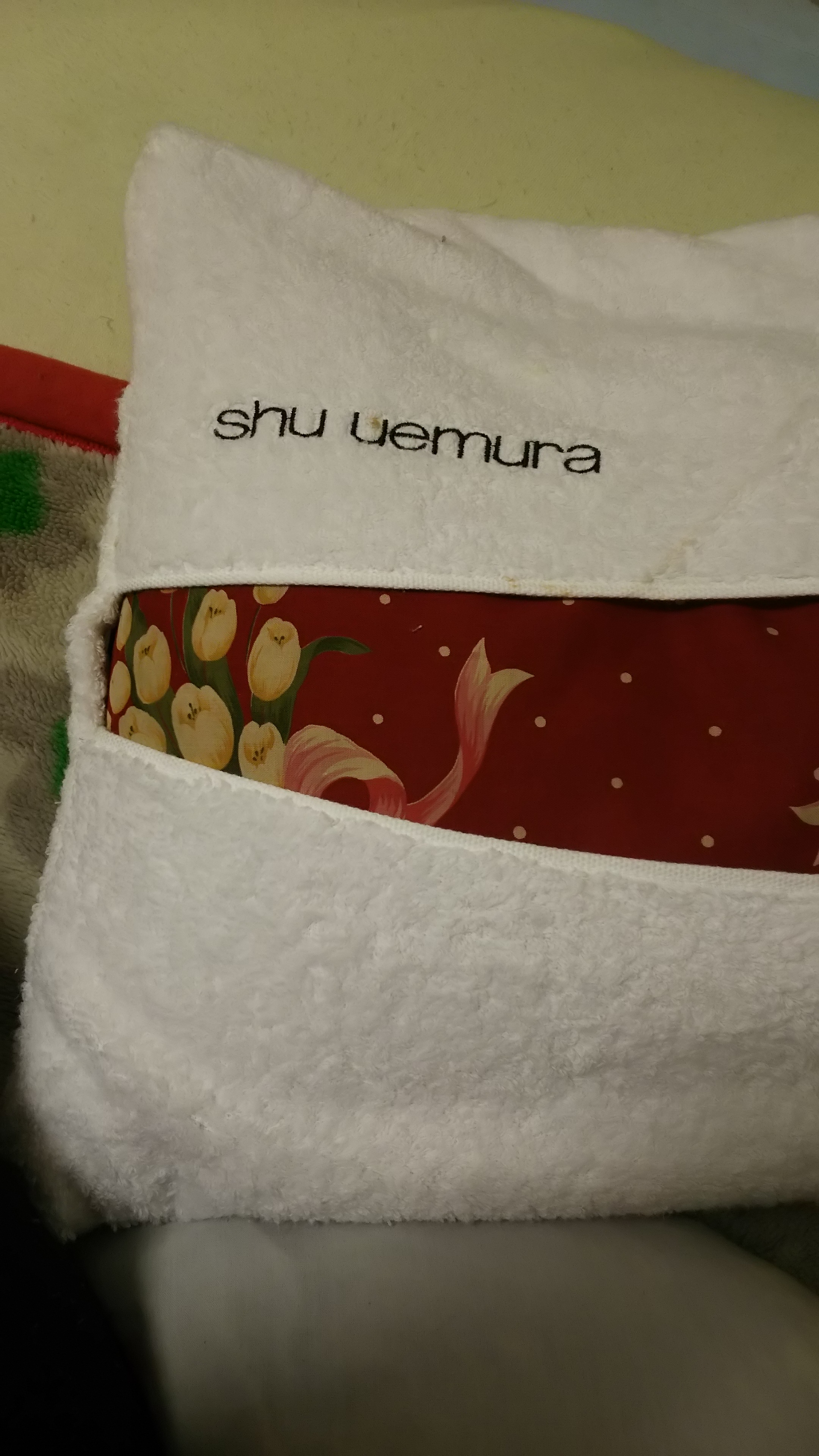 これ枕(裏)ですが、なんと憧れの化粧品ブランドのShU Uemuraの…です…。